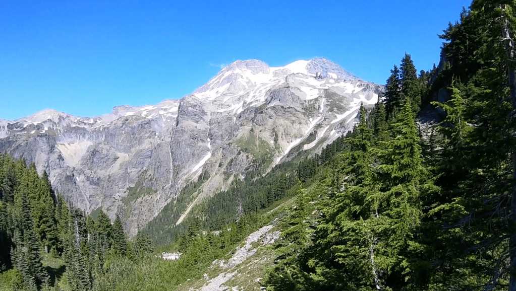 With the weight of our heavy backpacks, the heat, and uncomfortable footwear, we continued unbroken but spent as we gently step our way down along a forgiving trail to South Puyallup Camp followed by a small swarm of biting flies.