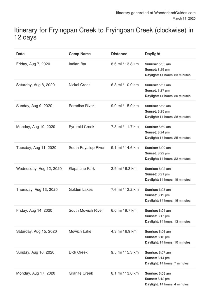 I am using the Wonderland Guides Trail Planner to play around with several scenarios. It has online tools and easy guides to adjust days.